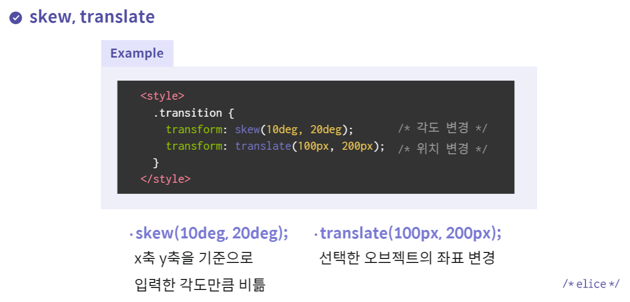 Transition (특정 조건 하에 연속적으로 변함)
